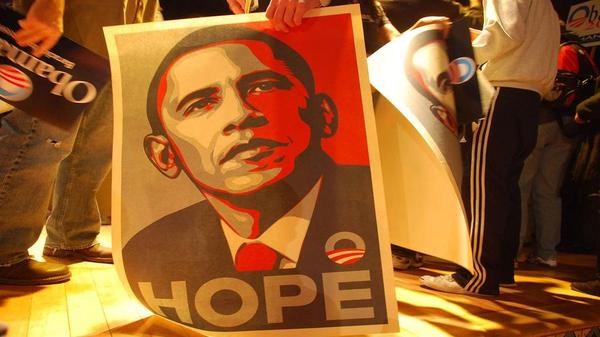 Shepard Fairey's (b. 1970) Barack Obama "Hope" poster (2008) is credited with helping to elect the 44th president of the United States. Steve Rhodes/Flickr (CC BY-ND 2.0)